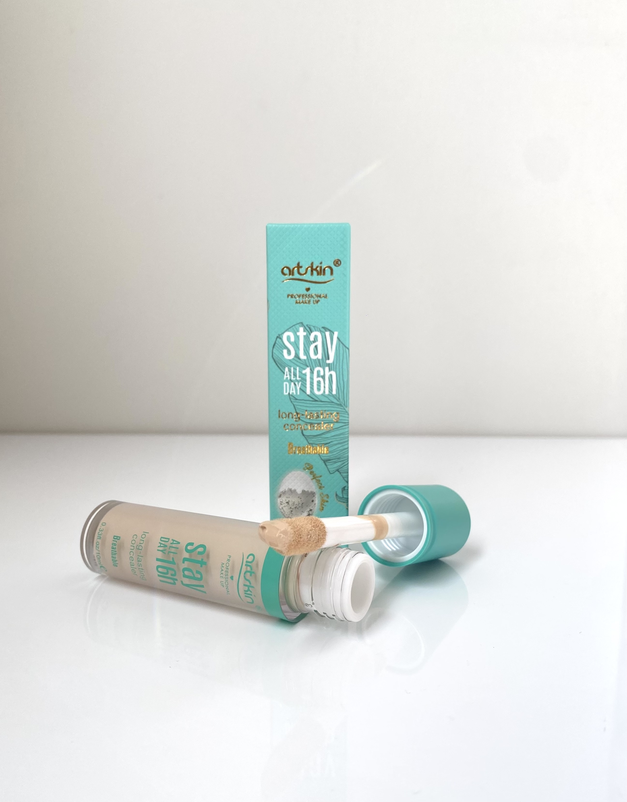 كانسيلر 15 ساعته آرت اسكين(سبز) براى رفع نواقص پوستى، به ويژه سياهى وتيی دور چشم موثر است و به دليل پوشش دهى بالا نواقص پوستى را به خوبى كاور مى كند. اين كانسيلر به دليل داشتن بافت سبک، پوست صورت را سنگین نمى كند و مانع اكسيژن رسانى به پوست نمى گردد. اين محصول داراى ٣ رنگ بندى روشن تا تیره بوده كه شما مى توانيد با توجه به تيرگی و روشنى پوست و ميزان لكهاى پوست رنگ موردنظر را انتخاب نماييد.اين محصول ضد آب است و ماندگاری بالايي دارد.