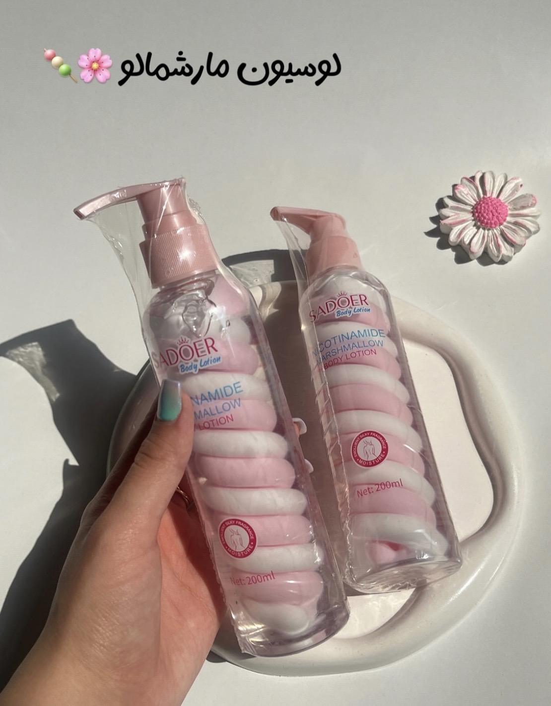 لوسيون استفاده ميكنى؟🍡اين لوسيون بدن رايحه ی خنک و خوشبو داره و بدن ونرم ميكنه🍭🧁😿لوسيون بدن پمپى نيكوتيناميد مارشمالو سادور💗حجم 200 ميل 💗فاقد حس سنگینی، چربی و جسبندگی 💗جذب سريع و پخش راحت روى بدن💗طراحى فانتزى و خاص💗مناسب استفاده براى انواع پوست 💗تسكين دهنده و التيام بخش💗حاوى نيكوتيناميد💗كمک به كاهش و رفع جوش و آكنه هاى روى بدن💗كمک بع ايجاد پوستی صاف💗اورجينال💗ساخت شركت بيوآكوا