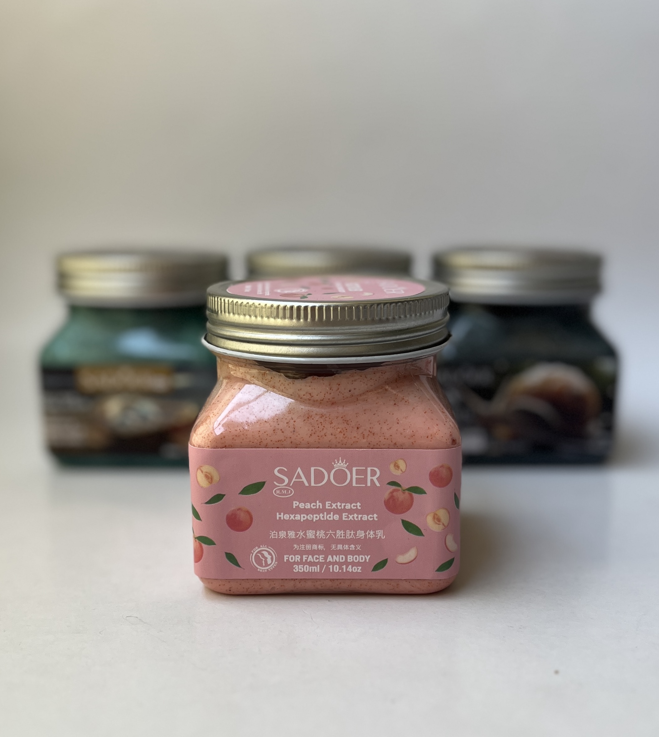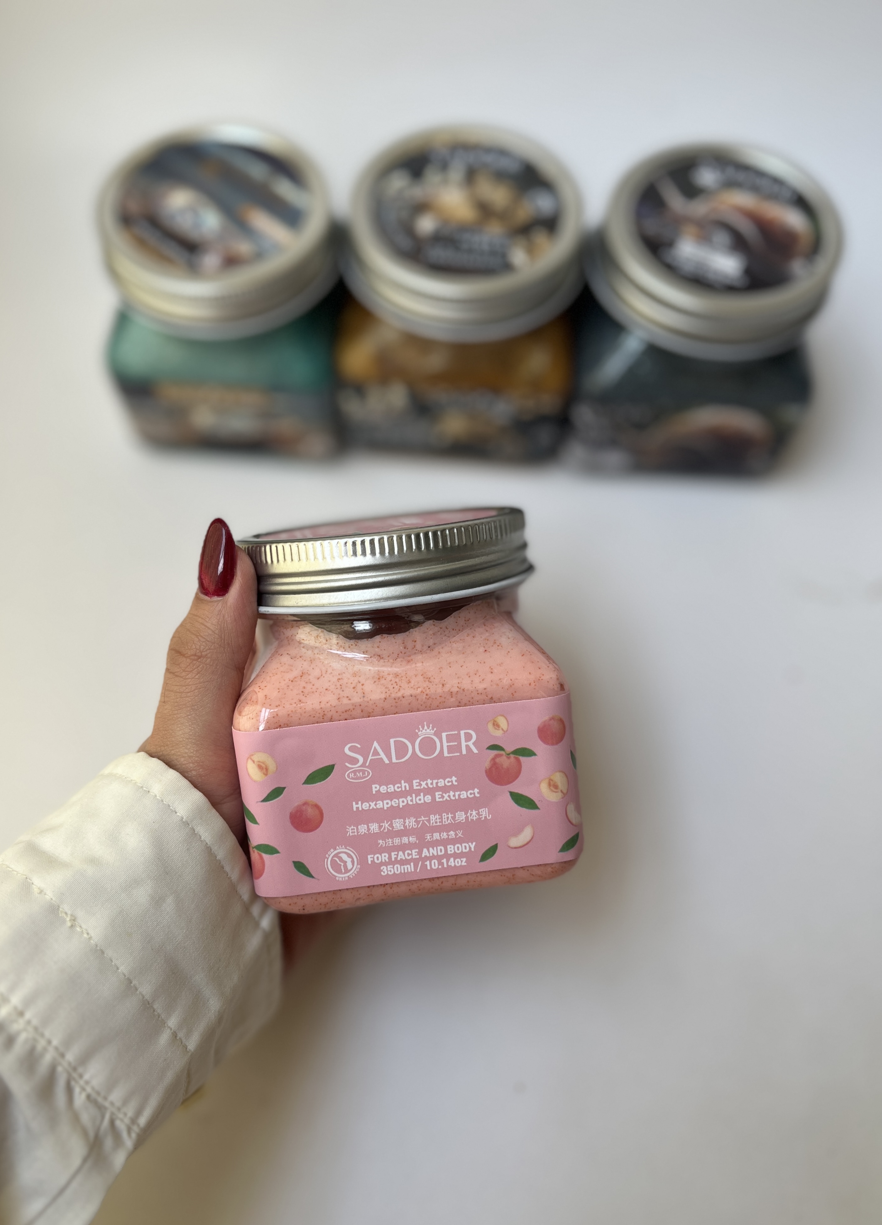 خوشبوووو ترين وباكيفيت ترين اسكراب دنيا رو اوردم براتوووون🥹😍اين اسكراب خفن ترییینه از برند محشر سادور در ۴رايحه خوشبو ک هم برای صورته هم بدن🥰پاكسازى منافذ پوست روشن و سفيد كننده پوست قابل استفاده براى صورت و بدن پاكسازى عمقى و سطحى پوست تغذيه و ابرسان و شفاف كننده قوی قابل استفاده براى نواحى حساس بدن نرم و مرطوب كننده پوست صورت و بدن حاوى دانه هاى فعال شنى براى لايه بردار داراى تركيبات خاص براى از بين بردن پوست هاى مرده🩷