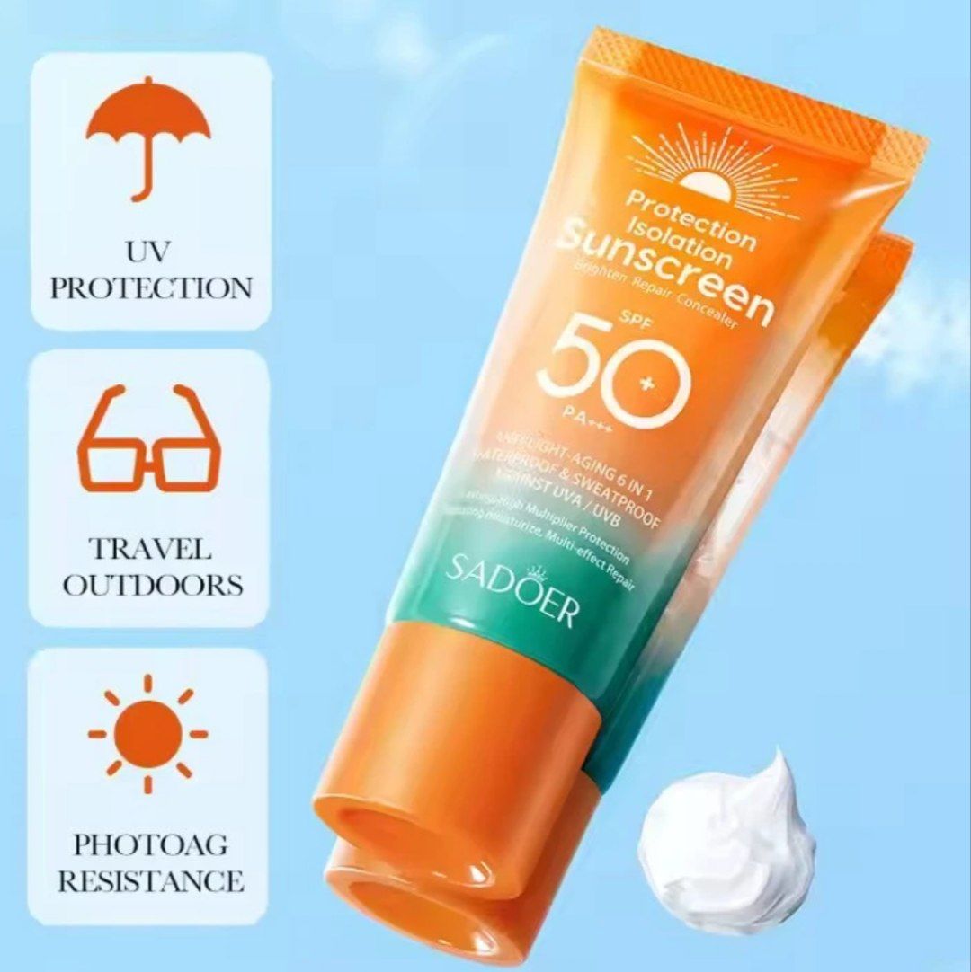 کرم ضد آفتاب سادور با خاصیت آبرسانی و ترمیم کننده دارای Spf50 – محافظت قوی در برابر اشعههای UVA و UVBدوکاره (2in1) – ترکیب ضدآفتاب و آبرسان در یک محصولضدآب و ضدتعریق – ایدهآل برای روزهای گرم و فعالیتهای خارج از خانهبافت سبک و جذب سریع – بدون احساس سنگینی روی پوستحاوی مواد مغذی برای پوست – جلوگیری از پیری زودرس و حفظ لطافت پوست